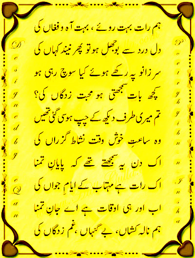 Urdu has been one of the premier languages of poetry in South Asia for two centuries, and has developed a rich tradition in a variety of poetic genres. The Ghazal in Urdu represents the most popular form of subjective music and poetry, whereas the Nazm exemplifies the objective kind, often reserved for narrative, descriptive, didactic or satirical purposes. Under the broad head of the Nazm we may also include the classical forms of poems known by specific names such as Masnavi (a long narrative poem in rhyming couplets on any theme: romantic, religious, or didactic), Marsia (an elegy traditionally meant to commemorate the martyrdom of Hazrat Husayn ibn Ali, grandson of Muhammad, and his comrades of the Karbala fame), or Qasida (a panegyric written in praise of a king or a nobleman), for all these poems have a single presiding subject, logically developed and concluded. {However, these poetic species have an old world aura about their subject and style, and are different from the modern Nazm, supposed to have come into vogue in the later part of the nineteenth century.